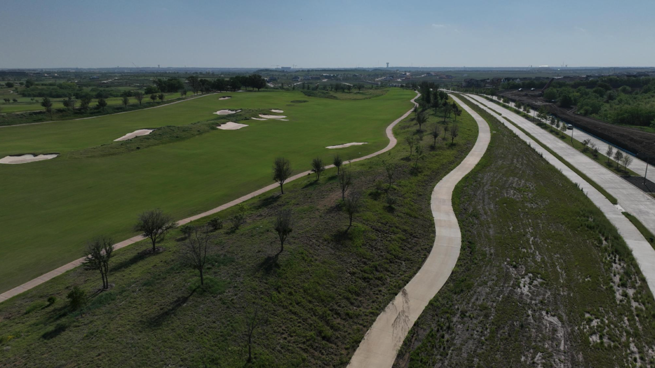 Nearby connections include the trail surrounding PGA Frisco, which runs from Legacy Drive to Teel Parkway. The Trails of West Frisco extend north along Teel Parkway and through the natural corridor of Cottonwood Creek.